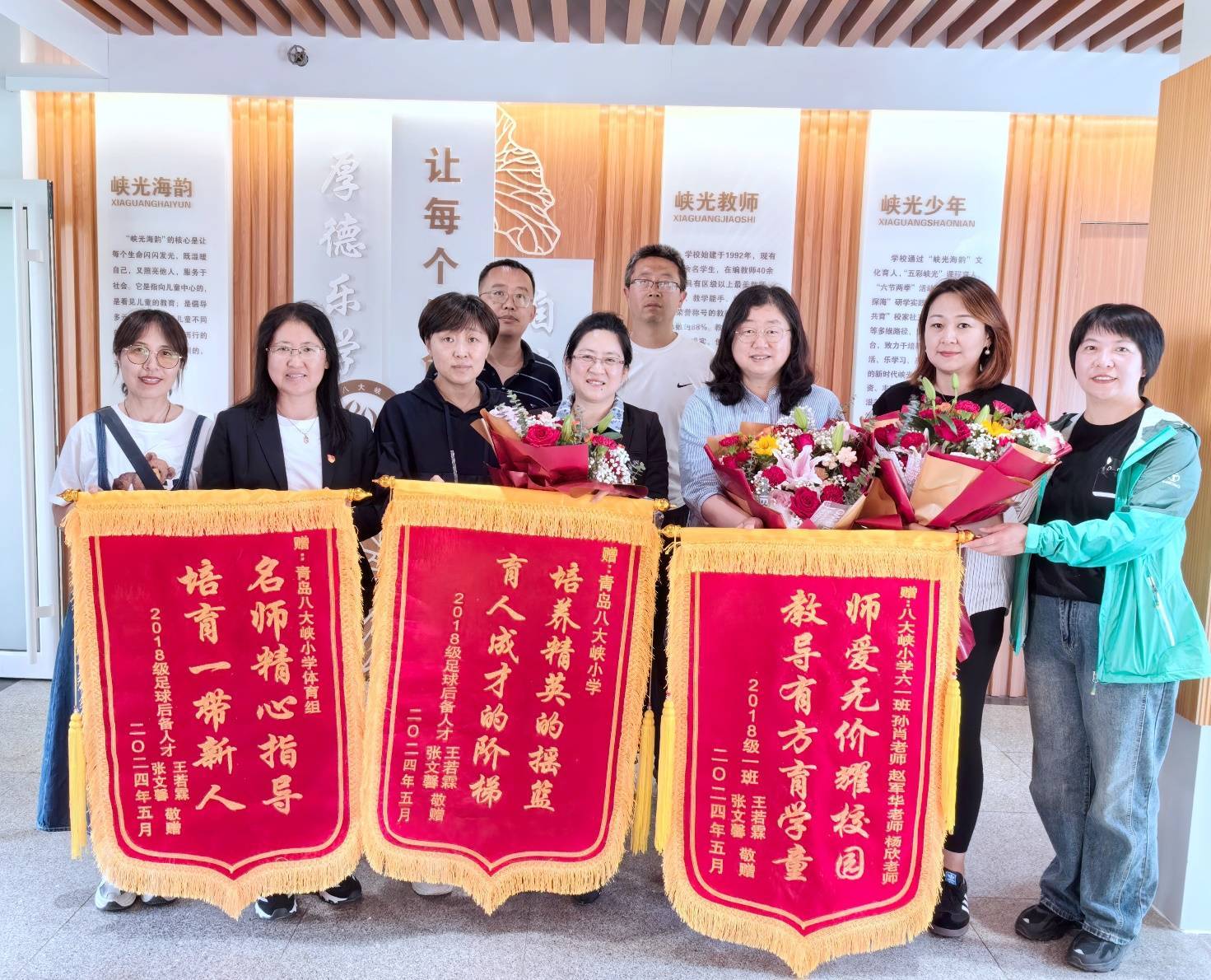 学校虽小,但教师一直保持强劲的成长态势。在青岛八大峡小学这个不到 40人的教师团队中,藏着令人安心的实力: 88%教师获得区级以上教学类荣誉称号,其中既有省级教学能手领航,也有市级名师护航。