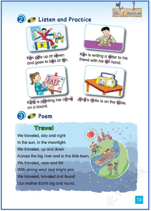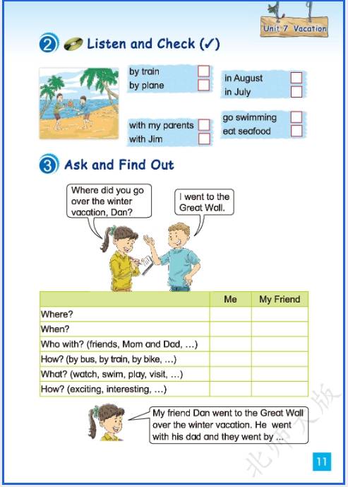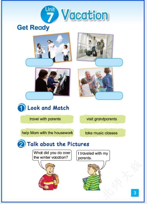 - Unit 7 Vacation:vacation, travel, housework, over, trip, London, exciting 等。