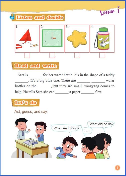 - 词汇:涵盖家庭、学校、日常活动、食物、动物、颜色、数字等各类主题相关的基础词汇。例如,家庭成员的称呼(father, mother, brother, sister 等)、学校设施与课程(school, classroom, teacher, math, English 等)、日常活动短语(get up, go to school, have lunch, play football 等)。