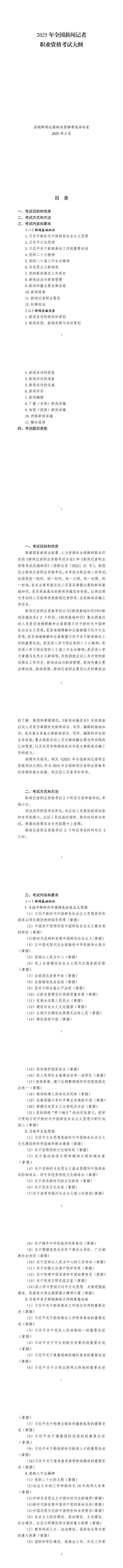 5月13日,全国新闻记者职业资格考试办公室公布《2025年全国新闻记者职业资格考试大纲》。