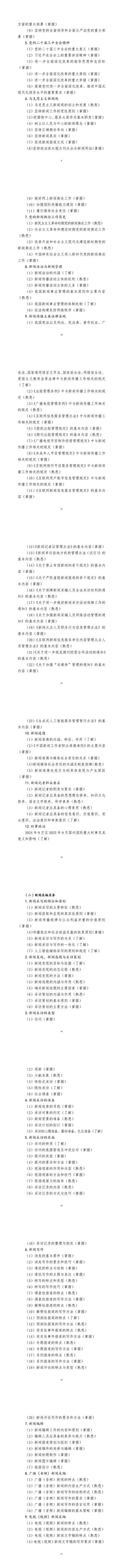 《2025年全国新闻记者职业资格考试大纲》全文如下: