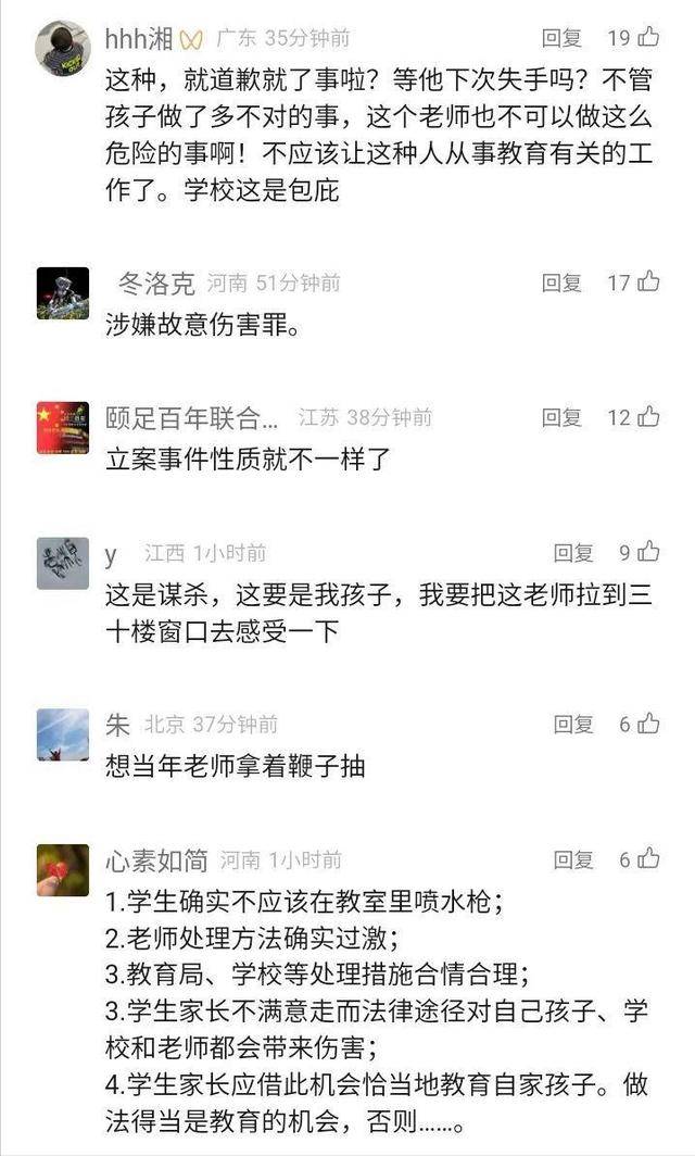 [下雨]四年级的小学生,就因为玩水枪的时候喷在老师的身上,就被老师掐脖子,打耳光,甚至悬挂在三楼的窗户外面恐吓他!