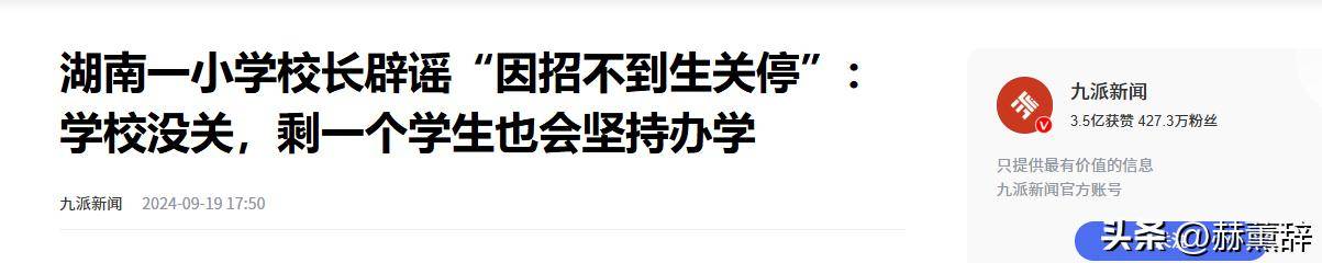 一些地区小学招不到人,人数比较少,最终只能被迫关闭,当然,有一些学校例外,2024年9月,新闻报道出,在湖南衡阳有一所小学人数只有几个人,其中一个年级还出现一个人现象。