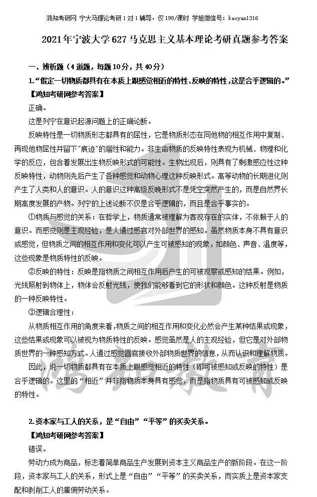 2024年宁波大学627马克思主义基本理论考研真题参考答案