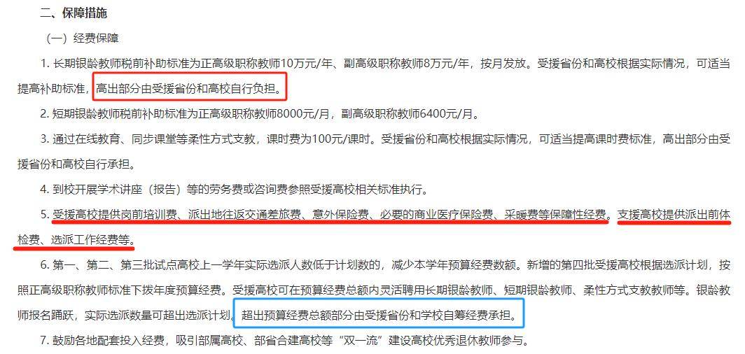 此处需要注意的是,“银龄教师”的待遇并非主要靠中央/地方补贴。
