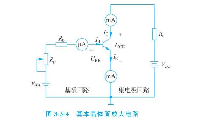 NPN型晶体管构成的基本放大电路中的电流如图3-3-4所示,其中的电流关系为