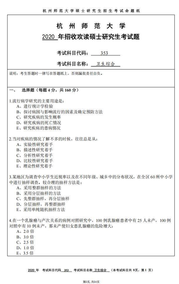 3.某地区为调查中小学生近视率以及在不同年级、城乡中的分布状况,在全区60所中小学中进行抽样调查。较合理的抽样方法是:
