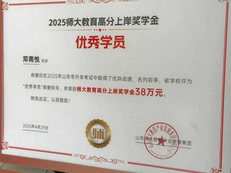谁能想到,眼前这位内敛文静的姑娘,在今年专升本的考试中,一路披荆斩棘,以357分的亮眼成绩一举夺魁,凭借自己的努力,斩获38万元奖学金,顺利被临沂大学录取,完成了一场漂亮的人生逆袭。