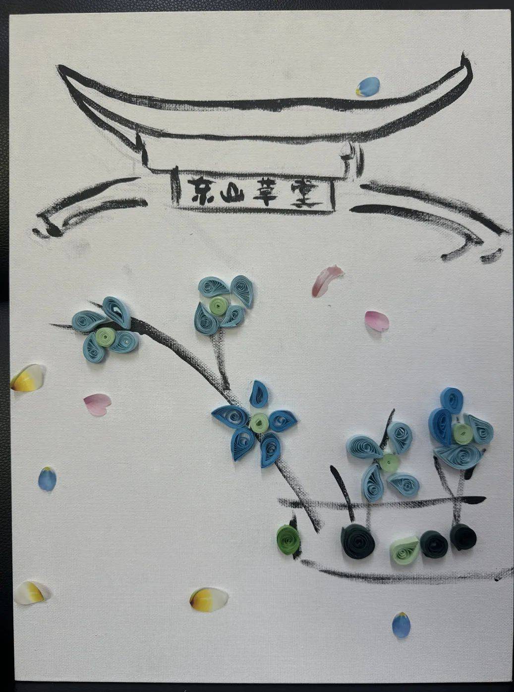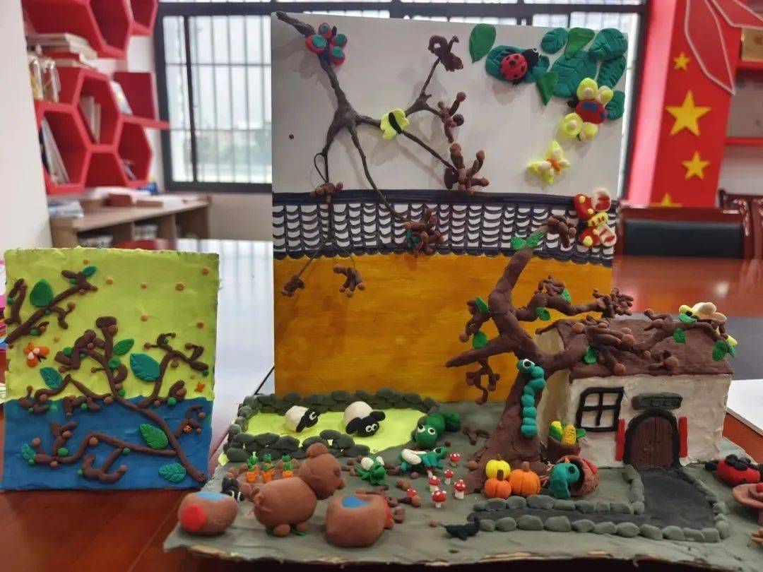 他们或以水彩、水墨等形式创作《拐枣树的四季》,捕捉其春芽、夏叶、秋果、冬枝的形态变化;或以衍纸工艺还原拐枣蜷曲的果实形态,通过卷、捏、拼贴等手法,将“丑”的视觉特征转化为抽象艺术语言,在立体构成中理解几何美与自然造物的和谐;或用陶土重塑长辈们关于拐枣的甜蜜记忆,捏制的“微观拐枣院墙”栩栩如生,充满诗意画意。