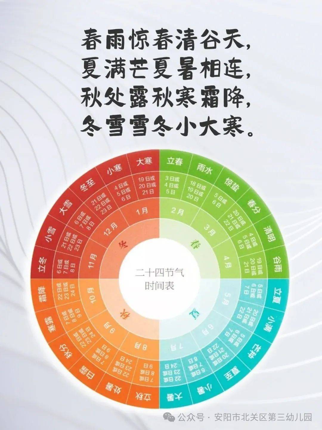 一直以来,北关区第三幼儿园十分重视二十四节气在幼儿教育中的有机融合与运用,将其作为幼儿了解中国传统文化、培养爱国情感的重要途径之一,发展幼儿对大自然的感知能力,培养儿童对大自然的热爱、拓宽儿童的视野,传承中华民族传统文化。