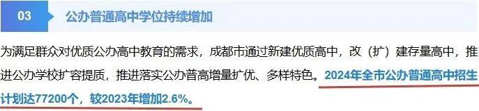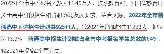 今年,成都新增的高中就有10所以上。具体要增加多少学位,家长们可以坐等6月初招生计划。