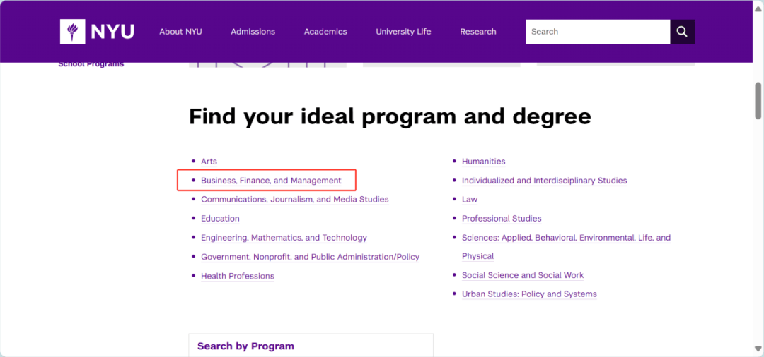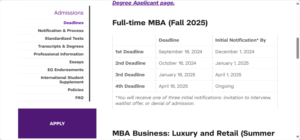 以商学院排名全美第6的纽约大学的Full-time MBA项目为例,展示大概的官网查询流程: