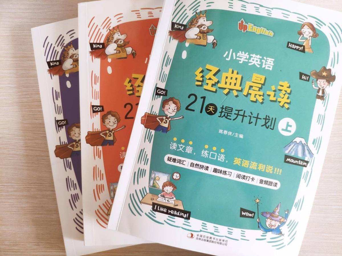 我家孩子从一年级就开始读的是《小学英语经典晨读21天计划》,这套书分为上中下三册,对应的是小学6年,每两年读一本,难度是不是狠毒?