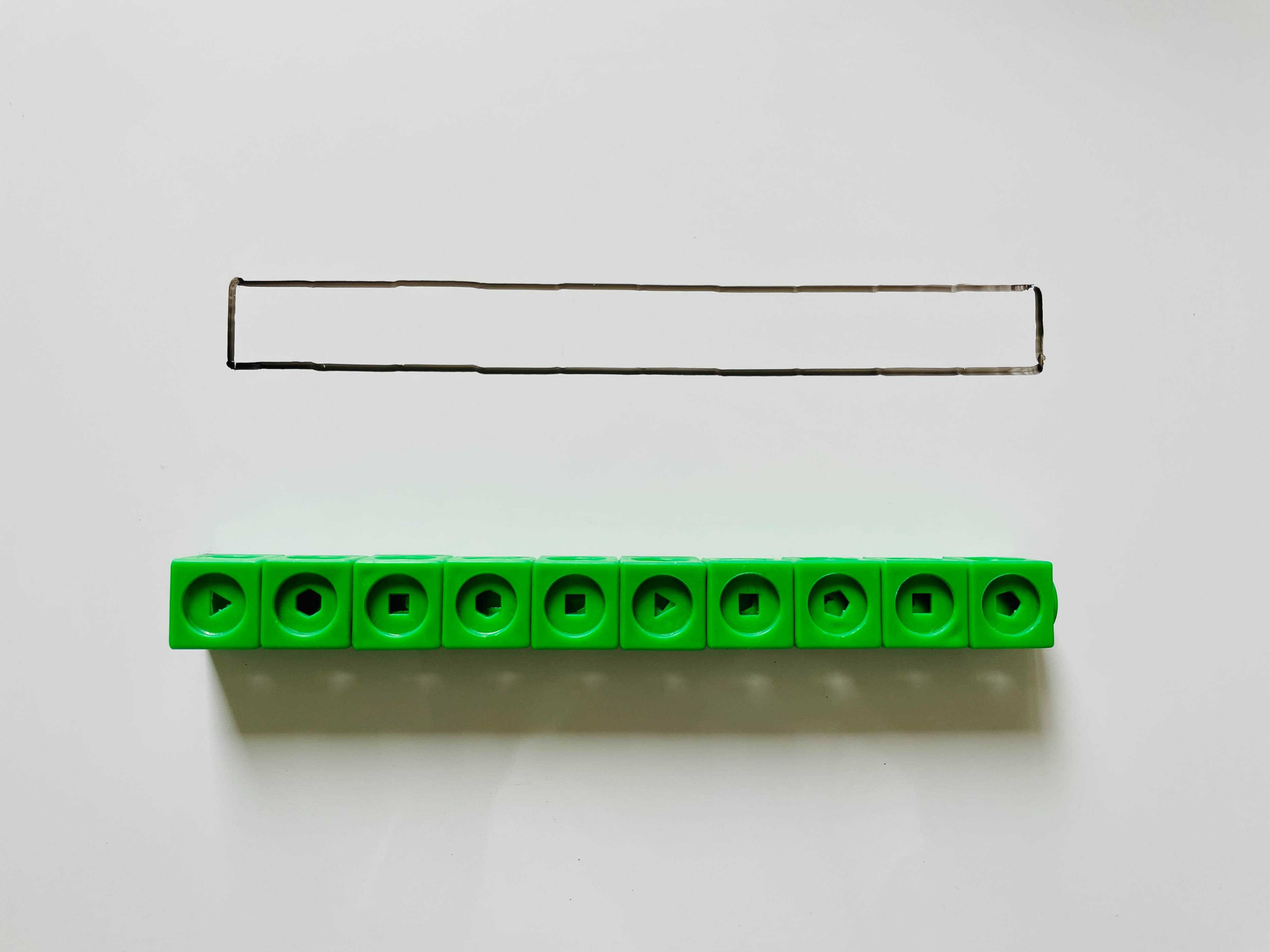 然后引导孩子观察整体:忽略积木间的缝隙,它就形成了一个完整的长条。这个长条本身,就是代表数字10的“长条图”。