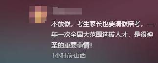 很快就有网友回复,即便没有假期,家长们大多数都会请假来细心照顾孩子们这几天的生活,这样全国性选拔人才,本来就是一件很神圣的大事!