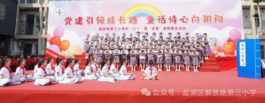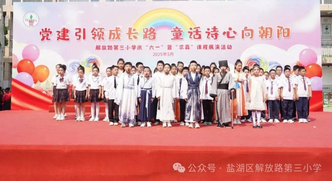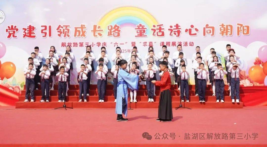 迎着温暖的阳光,乘着夏日的微风,童心与智慧在此刻碰撞,梦想与成长在这里绽放!解放路第三小学于2025年5月28日举行了庆“六一”暨“求真”经典诵读课程展演活动。解放路第三小学以经典诵读融合课程勾勒成长脉络,孩子们在诗词歌赋的诵读中汲取养分,体现了解放路第三小学通过传统文化实现了长期浸润与学科育人的双重价值。
