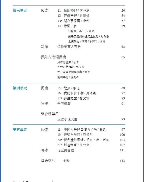 统编版九年级小学语文(上下册)电子课本可以方便大家随时随地预习或复习课本知识,为此,我们找到了统编版小学九年级语文(上下册)新教材电子书教材的全部内容,以高清图片的形式呈现给大家,希望能够提高大家的学习效率。