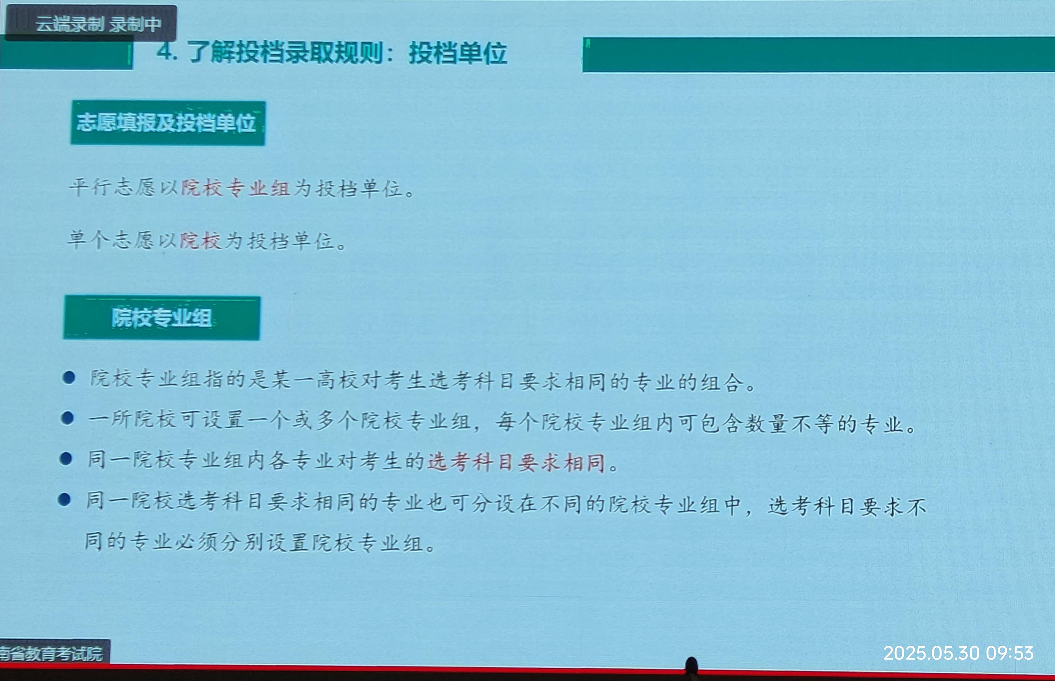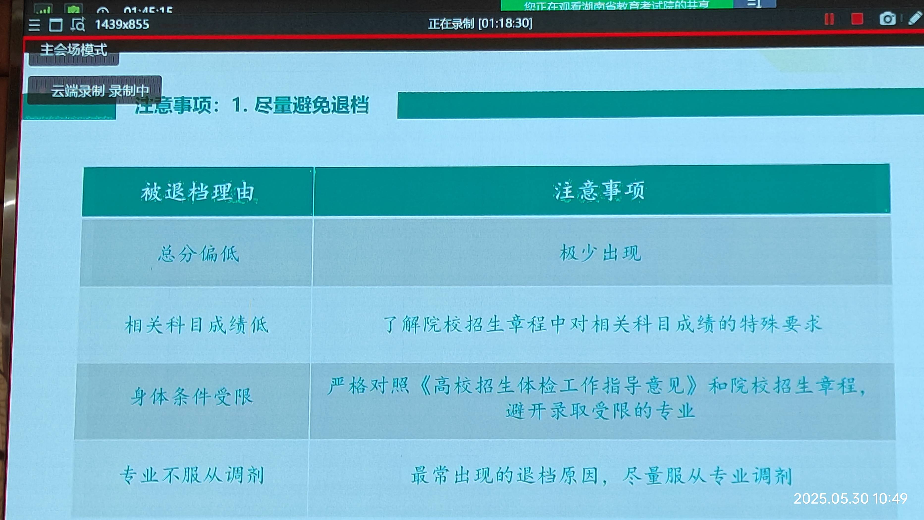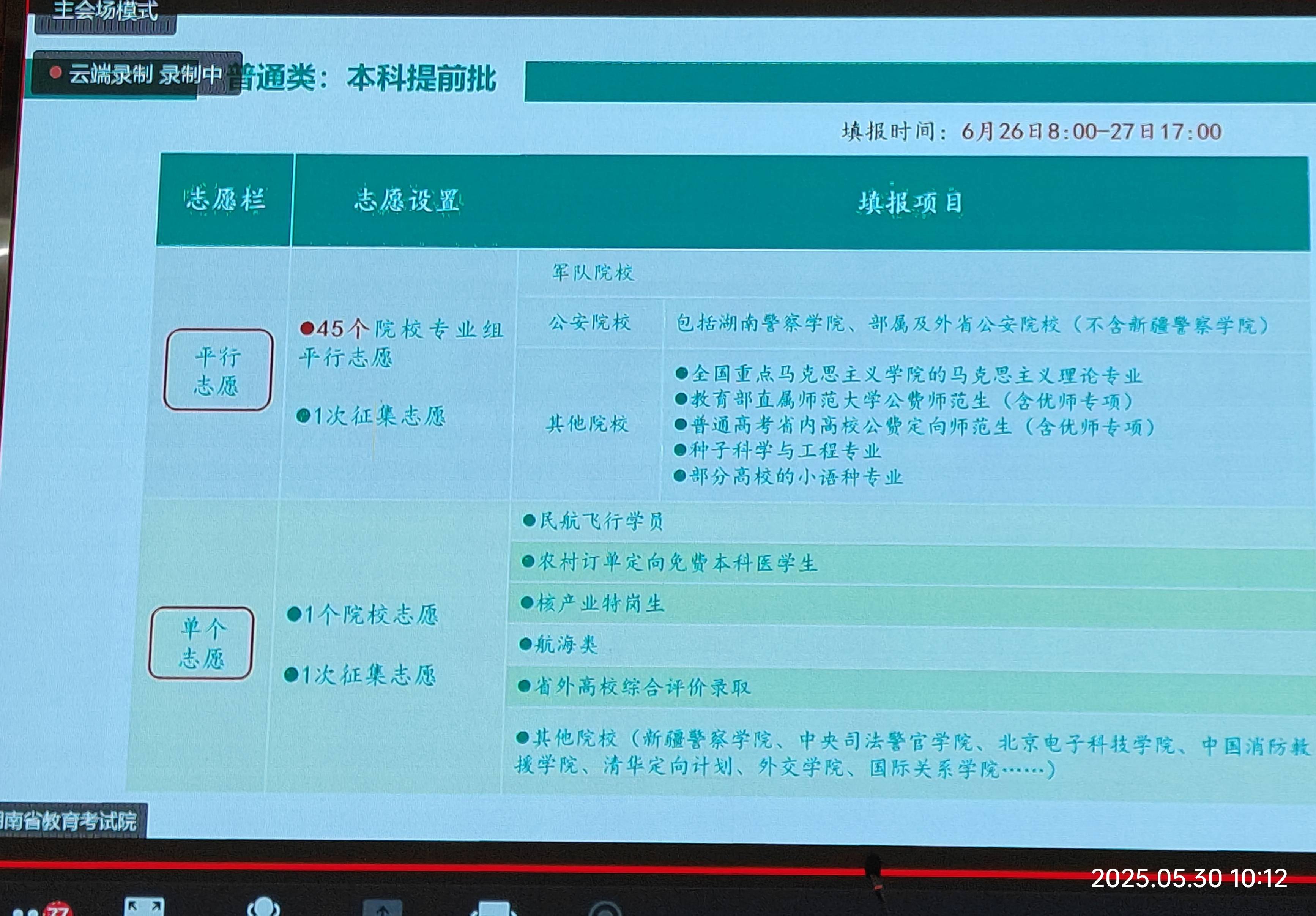 今天(2025-5-30)上午9:30,本届高三班主任及有关领导集中在报告厅听会,主题是:“2025年HN高考政策解读与志愿填报”,凡是既定了的值得广而告之的都和盘托出。记笔记是赶不上节凑,用手机拍摄是最好的学习方式。这里原本推出,共本届高三学子参考使用,尤其是高考后,特别是高考出成绩后,填报志愿是“刚需”。
