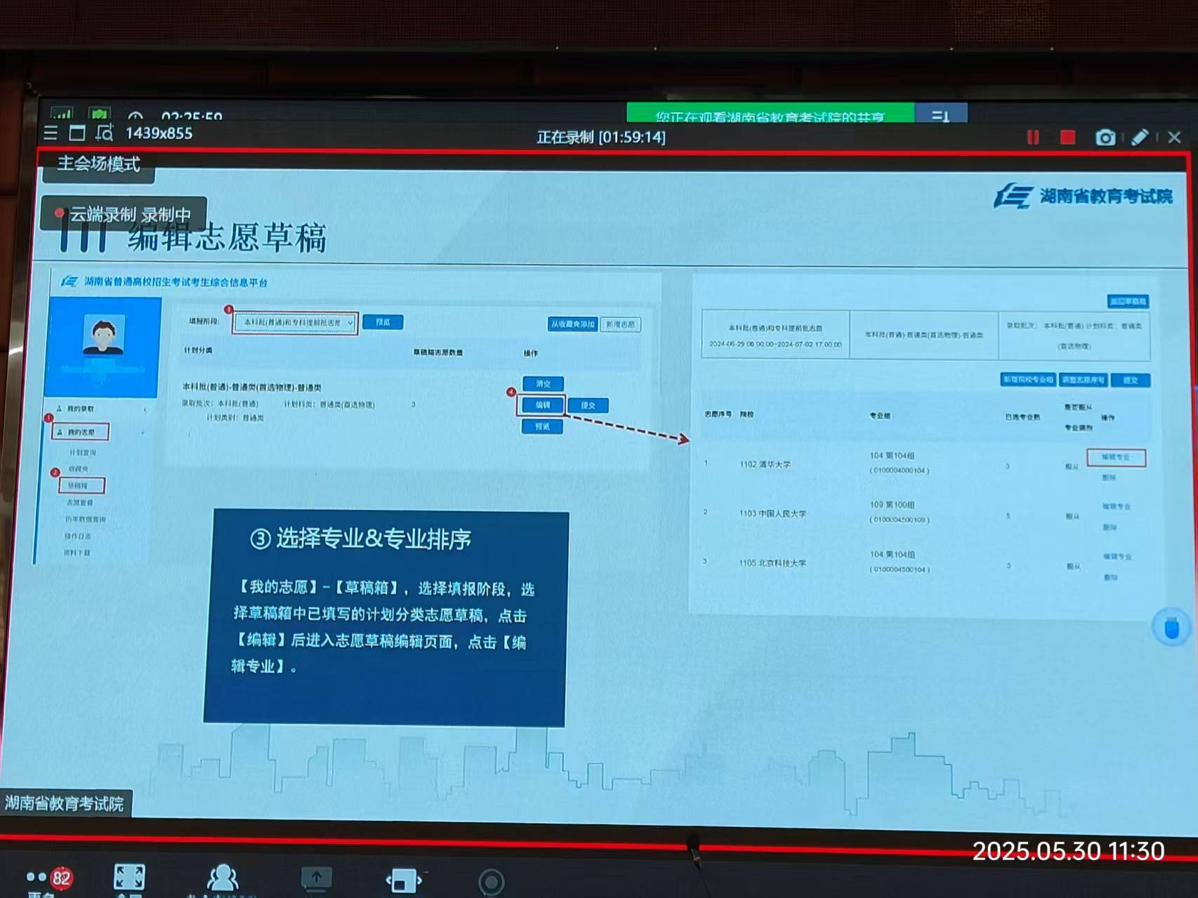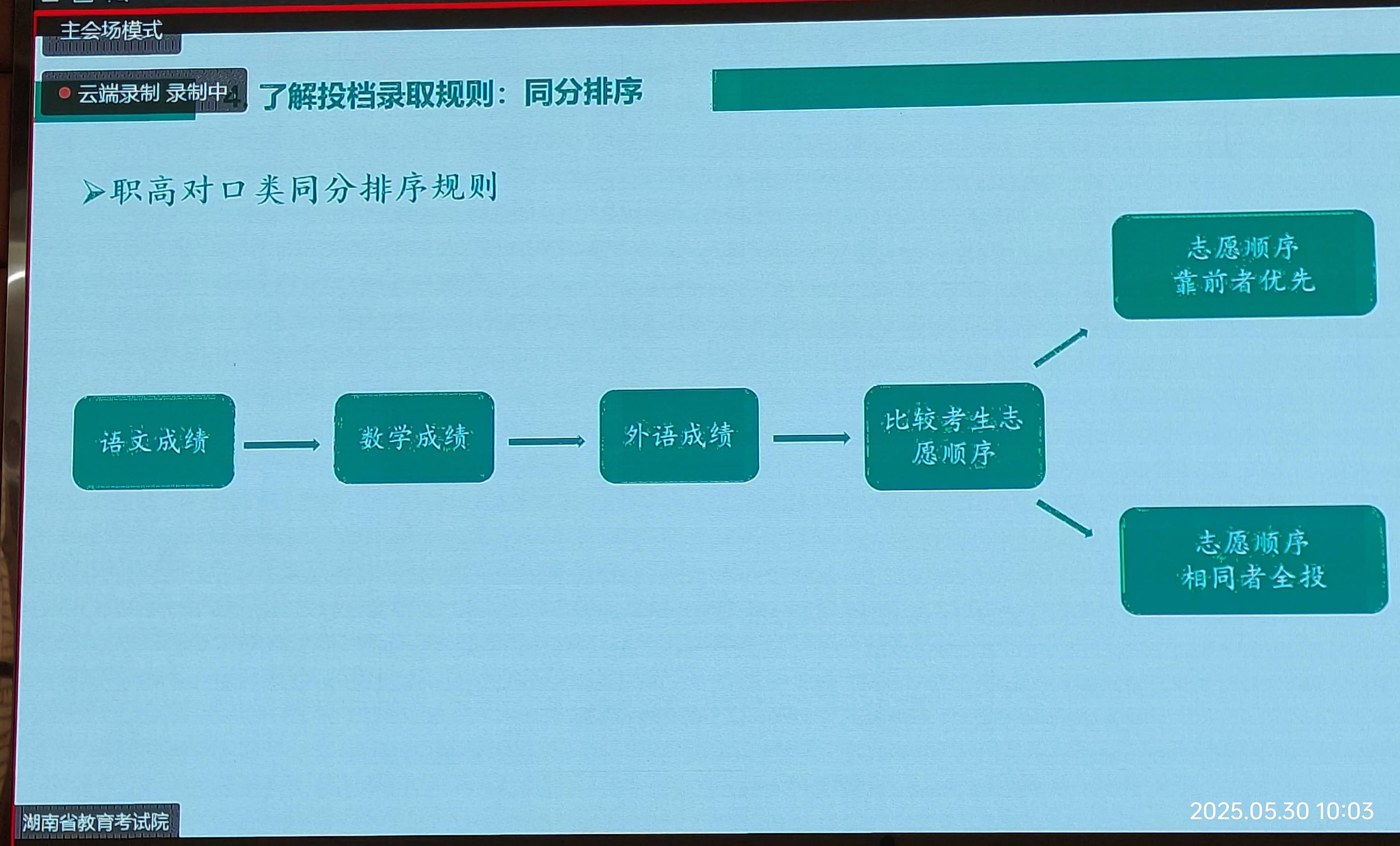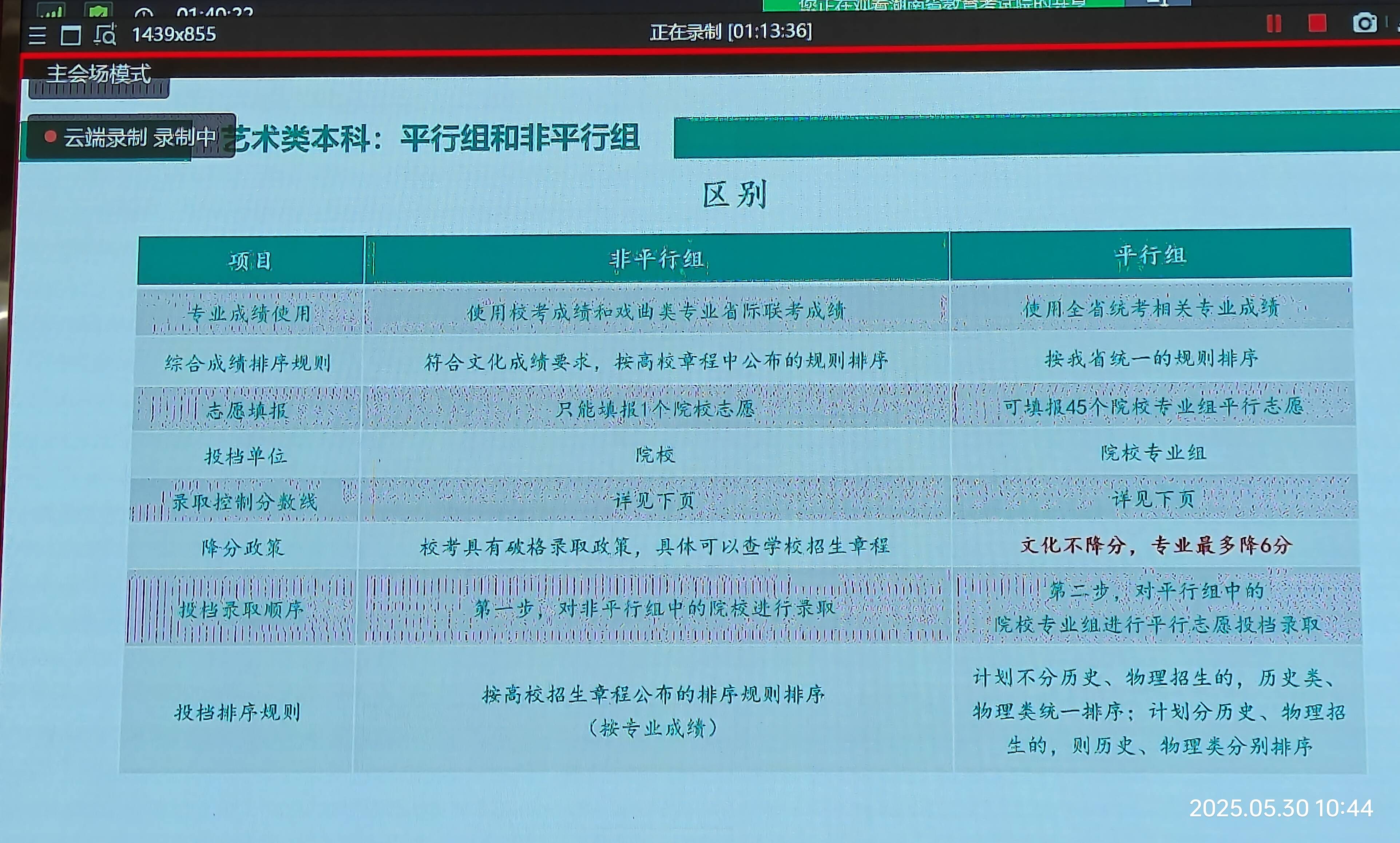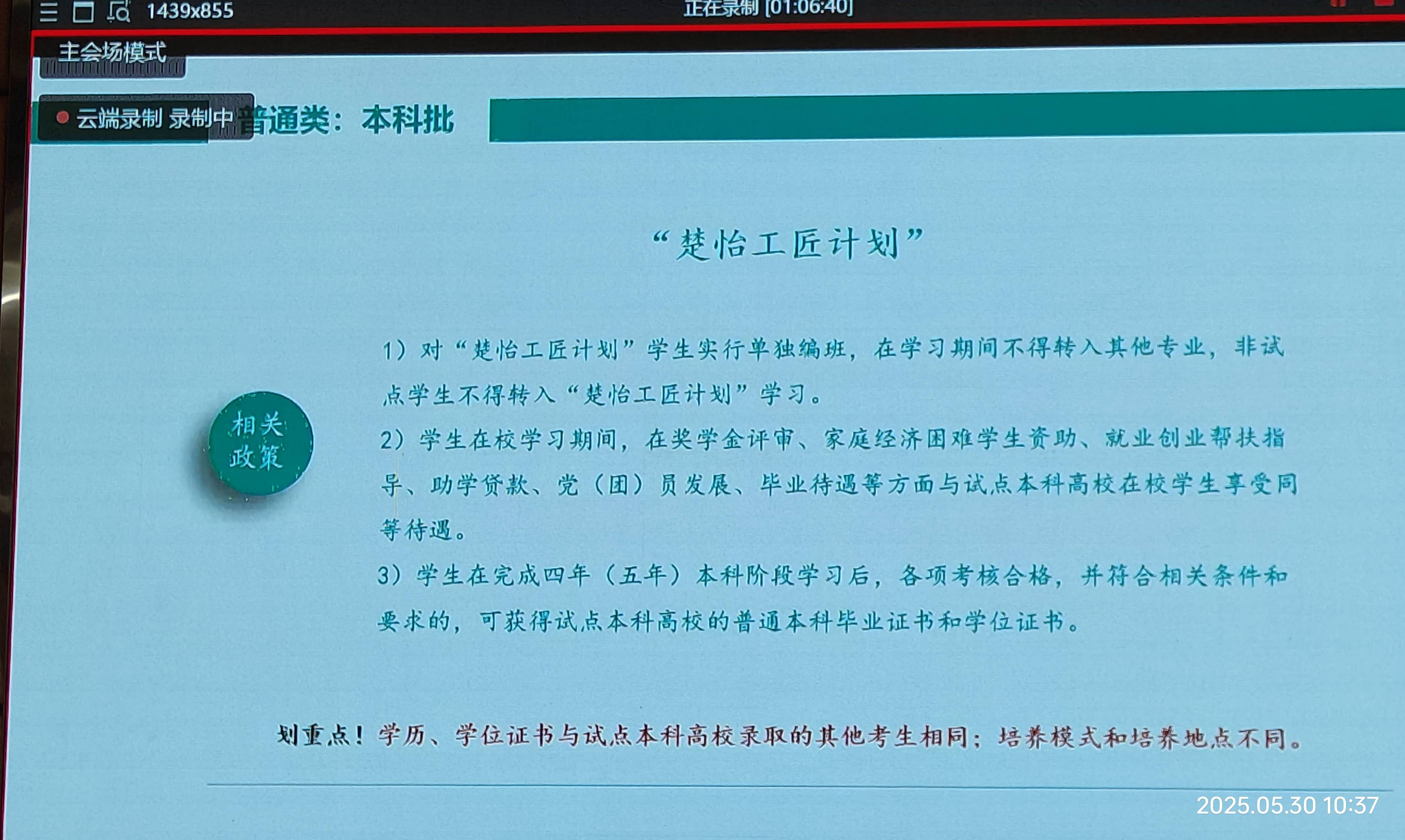 今天(2025-5-30)上午9:30,本届高三班主任及有关领导集中在报告厅听会,主题是:“2025年HN高考政策解读与志愿填报”,凡是既定了的值得广而告之的都和盘托出。记笔记是赶不上节凑,用手机拍摄是最好的学习方式。这里原本推出,共本届高三学子参考使用,尤其是高考后,特别是高考出成绩后,填报志愿是“刚需”。