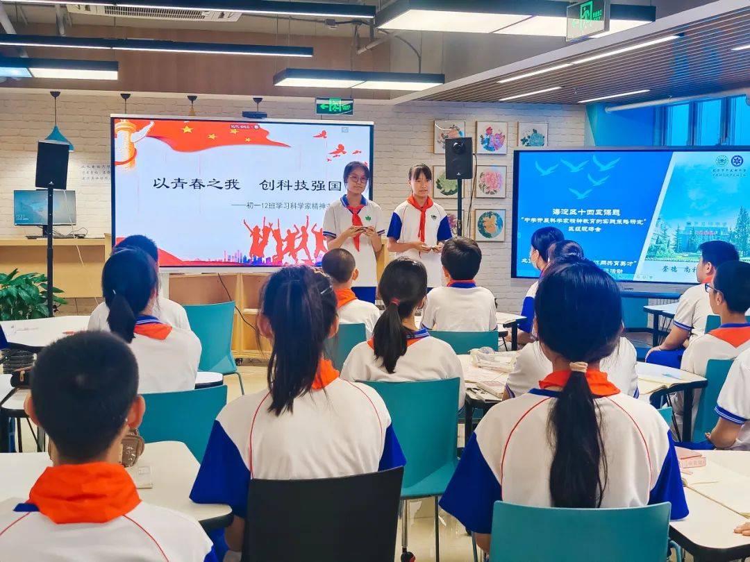 在汪德昭书院,中关村中学举办了一场主题为“科学家精神的校园传承”的交流研讨会。初二9班班主任常蕊分享到,她所开展的“追光者”主题班会,以中国科学家事迹激发学生崇尚科学、探索未知的动力,并通过问卷调查与小组讨论,帮助学生自我反省,鼓励他们付诸行动向光前行。初一16班班主任闵丽设计了“我心中的那颗星”班会课,以杨伟和中国太空卫士故事引导学生领悟新时代科学家精神内涵。当天,来自人大附小亮甲店分校、海淀区实验小学、首师大附属中学等多校老师也一起分享了他们实践和传承科学家精神的经验。