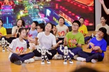 闭幕式文艺汇演精彩纷呈,创意与科技并存,传统与现代交融。在一段由学生自编的英文歌曲表演中,AI机器人登台共同参与表演。歌词以新时代中国城市的奋进精神为核心,彰显出新一代青年学子的家国情怀与创新精神。令人惊喜的是,一位酷似七宝二中校长时俊的AI数字人发表了一段“虚拟致辞”,赢得满堂喝彩。随后,时校长登台,以“AI赋能,讲好中国故事”为题发表讲话,鼓励同学们勇敢拥抱AI与英语学习的结合,努力成为讲好中国故事的新时代青少年。