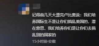 不少网友纷纷表示,前几天就看到美国一位教育家对自己的学生说,培养国际生并不是为了让他们搞乱美国的,那么潜在意思不就是说你们可以去搞乱别的国家吗?