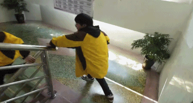 探索用什么姿势进行楼道过弯,既要把降速缩减到最小程度,还要不容易撞到人。