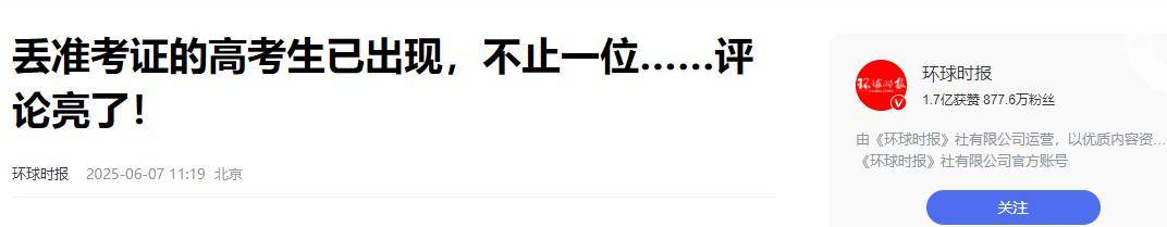环球时报2025-06-07——丢准考证的高考生已出现,不止一位……评论亮了!