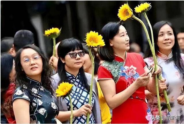 有的家长除了穿旗袍外还会拿着向日葵去考点门口,希望孩子能一举夺魁,还有的家长拿着甘蔗,甘蔗上面还绑着香蕉。