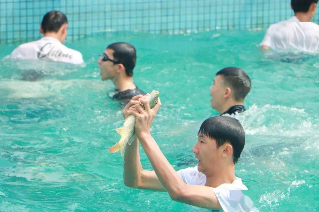 褪去书本的厚重,换上轻便的泳装,毕业班的同学们早已按捺不住,纷纷跃入清澈的池水。目标明确:池中那些灵动机敏的鲜鱼!这一刻,泳池成了青春的竞技场。不再是单打独斗,同学们自发结成小队:有人负责“驱赶”,将鱼群逼向角落;有人眼疾手快,俯身合围;更有身手矫健者,一个猛子扎下去,双手紧紧锁住“战利品”!岸上的同学则化身最强啦啦队,指挥声、加油声、成功捕获的欢呼声此起彼伏,池水被青春的热情搅得沸腾。