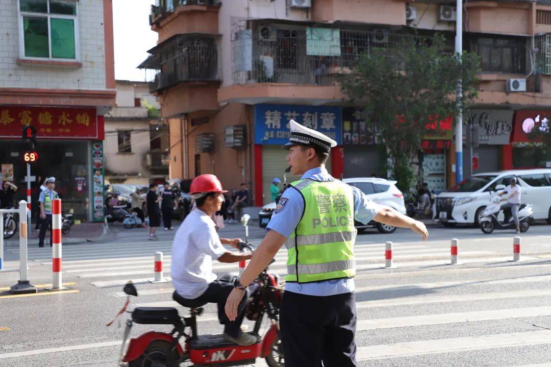 ▲ 高要交警在考点附近执勤,保证考点及周边道路交通安全有序畅通。陈彦成 摄