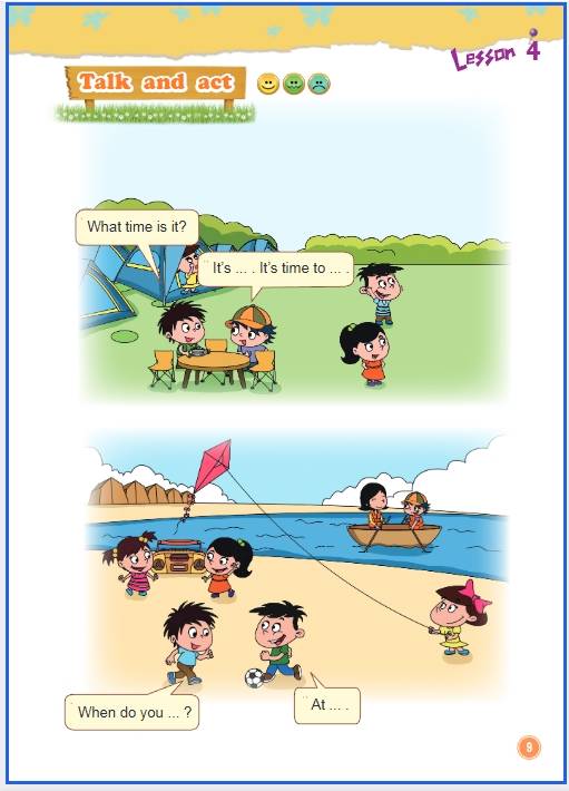 - 句型:What time is it? It’s... o’clock. It’s time to... When do you have your... lessons? At...