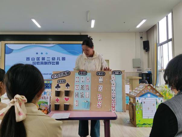 本次活动由西山区第二幼儿园教研组长段兆燕老师主持,教师们围绕幼儿年龄特点和教学需求,精心呈现了四十余种手工玩教具。作品涵盖科学探索、艺术创作、角色扮演等多个领域。