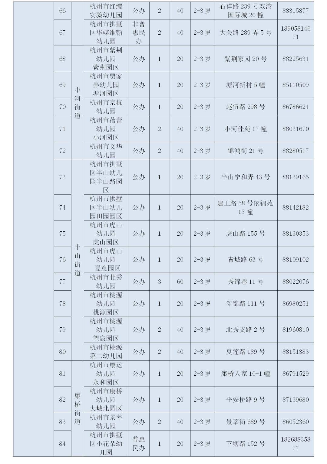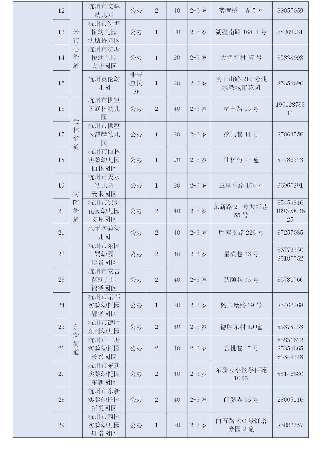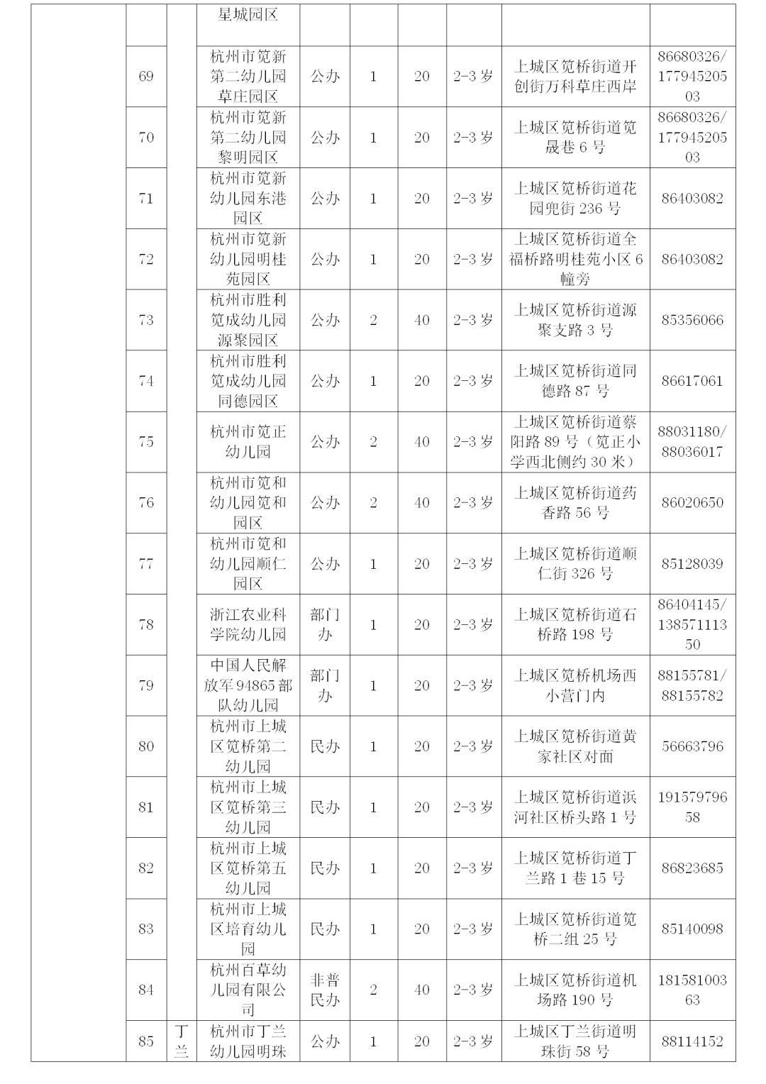 杭州市区2025年托班招生信息表