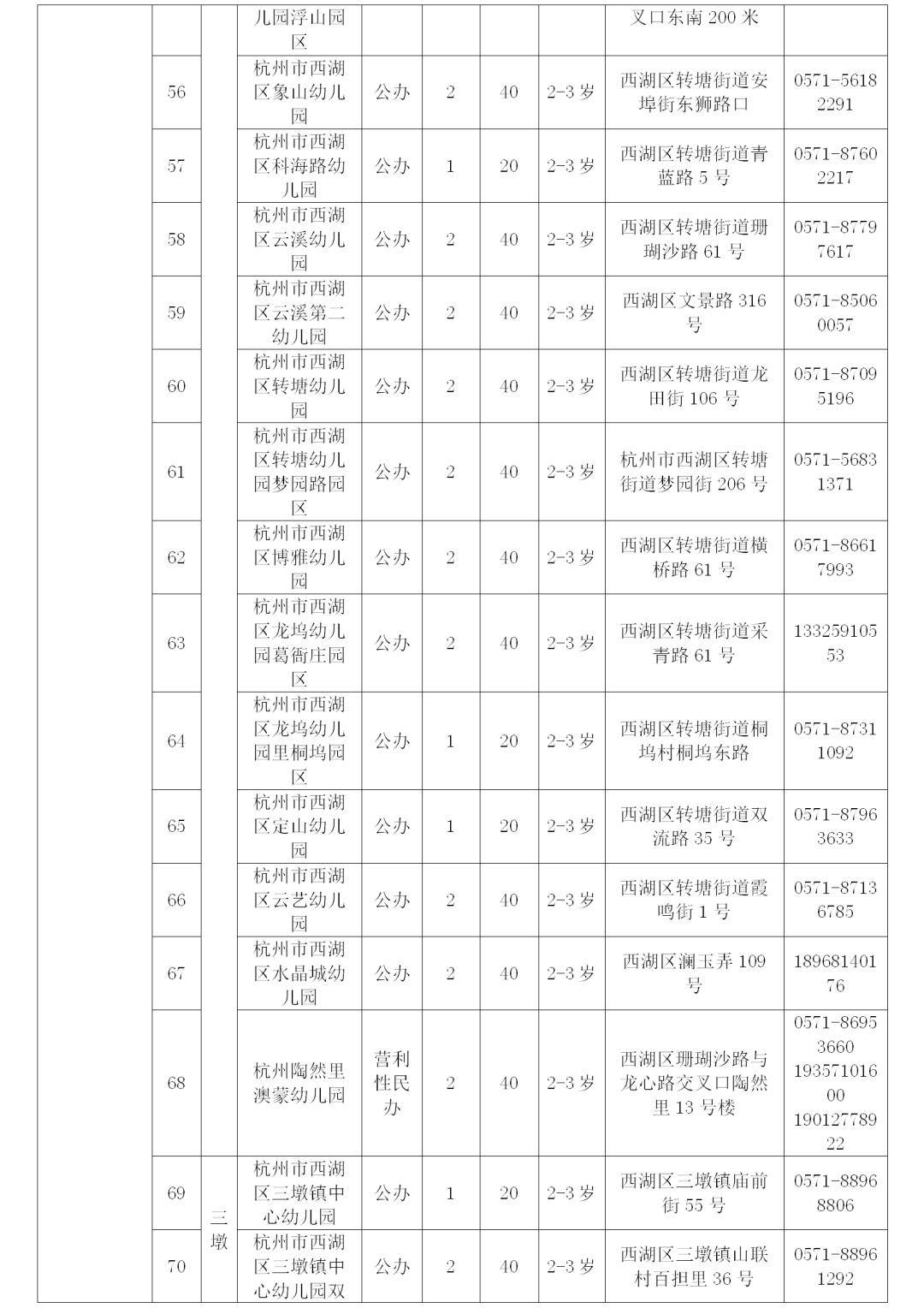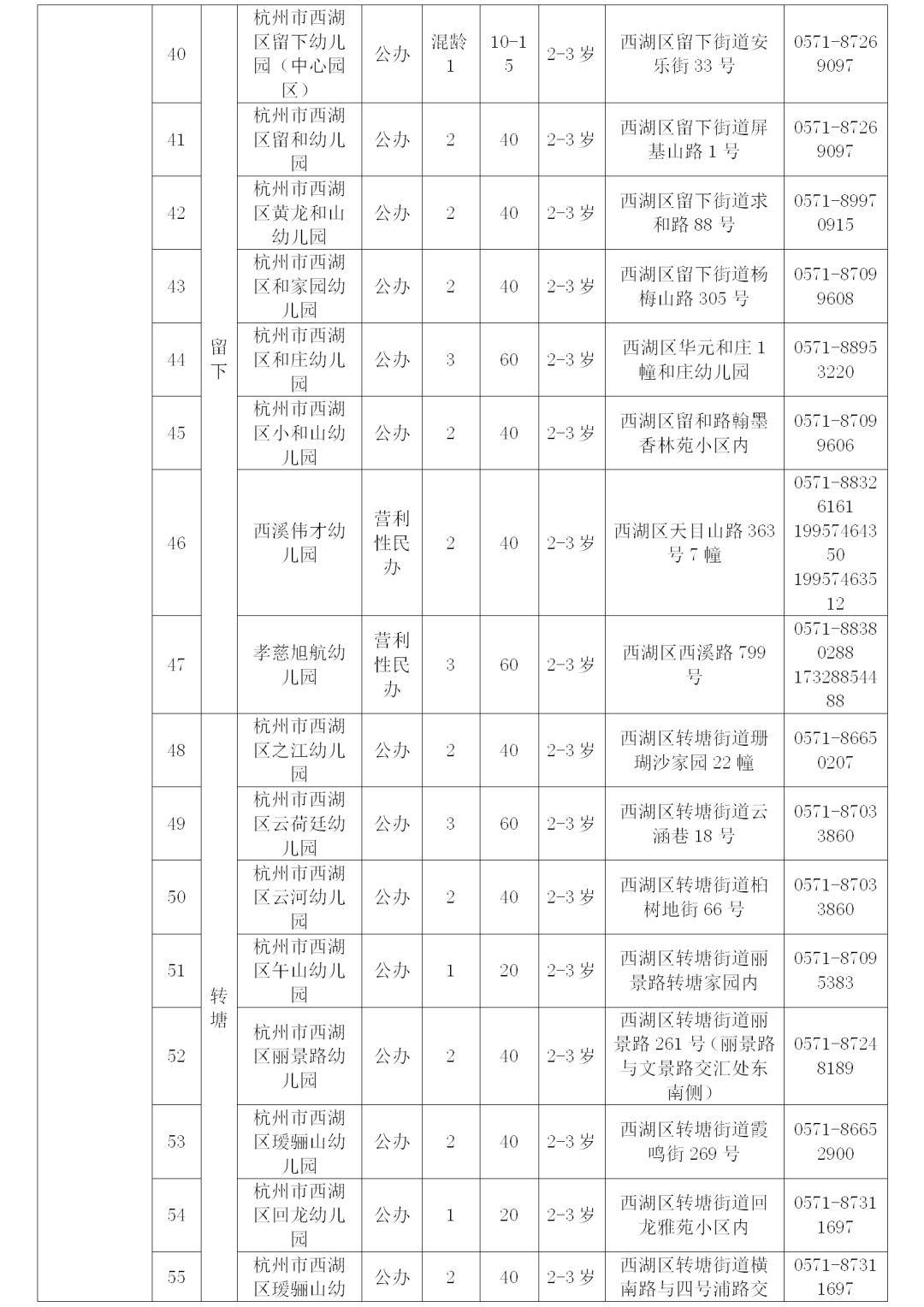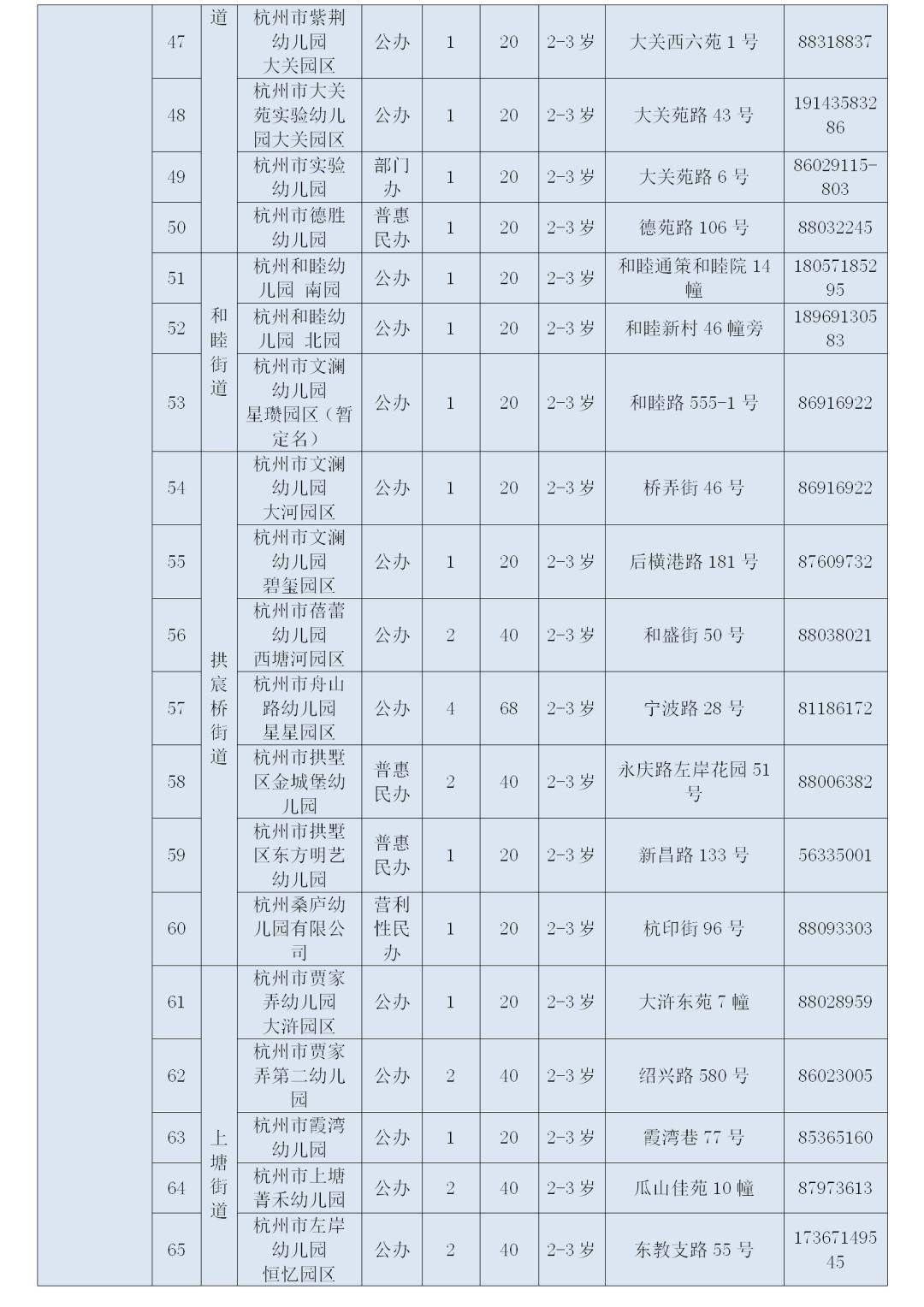 杭州市区2025年托班招生信息表
