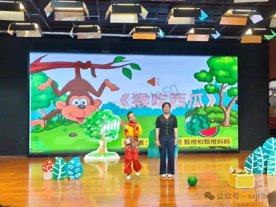 延续大阅读活动"家校共读"的理念,第二天下午,报告厅内灯光璀璨,亲子诵读展示比赛将活动推向高潮。14组亲子家庭依次登场,带来各具特色的表演:《是妈妈是女儿》诵读节目中,妈妈温柔诉说生活中的点滴关怀,女儿用纯真童声回应着对妈妈的依赖与爱,饱含深情的对话将母女间的眷恋与牵挂娓娓道来,令现场观众无不动容;《猴吃西瓜》则充满童趣,家长和孩子通过生动的语气变化与默契配合,将猴子们憨态可掬的模样与吃西瓜时的滑稽场景展现得活灵活现,引得全场欢笑不断。其他家庭或用悠扬配乐搭配深情诵读,或通过分角色朗诵重现诗词场景,让经典从书本中"活"了过来,为大家带来一场视听盛宴。