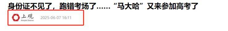1.上观新闻:《身份证不见了,跑错考场了……“马大哈”又来参加高考了》-2025-6-7