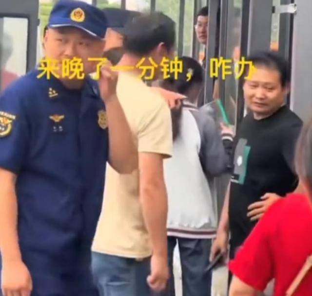 此时,考点的大门已经关闭,女生看到后十分焦急,哭着向保安请求开一下门。