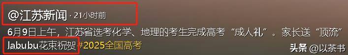 有当妈的,手里捧着包得漂漂亮亮的Labubu娃娃花,就等着孩子一出考场给个惊喜。