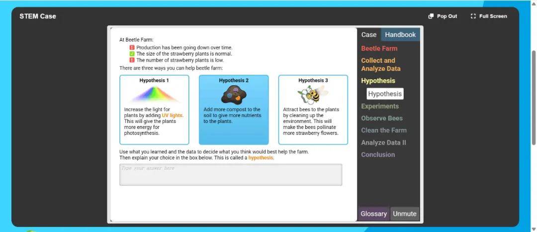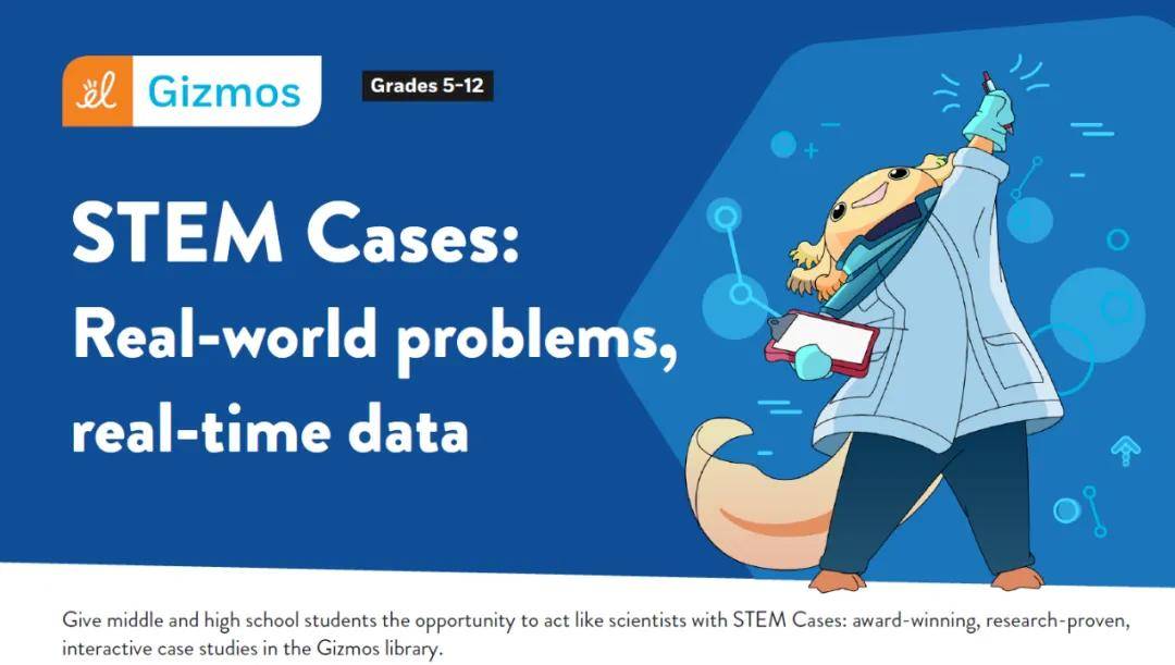 ExploreLearning的Gizmos为中小学生设计了一套沉浸式互动探究课程——STEM Cases。该课程由美国国立卫生研究院(NIH)和国家科学基金会(NSF)资助开发,每个案例时长约 30–90 分钟,聚焦现实生活问题。课程将复杂的现实挑战转化为可操作、可探究的学习情境,让学生在模拟实践中体验科学家、工程师等职业角色,培养他们解决实际问题的能力。