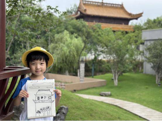 随后,令人期待的徽派建筑写生环节开始。孩子们在老师引导下,在徽园一角铺上画纸,拿起画笔,化身小小画家。他们仔细观察徽派建筑独特的马头墙、精美的门窗雕花,将眼中所见、心中所想倾注于笔尖。孩子们专注地勾勒建筑轮廓,还有的在画面中添上自己想象的蓝天、白云。虽然笔触稚嫩,但每一幅作品都充满童真与创意,展现出孩子们对徽派建筑的独特理解和感受。
