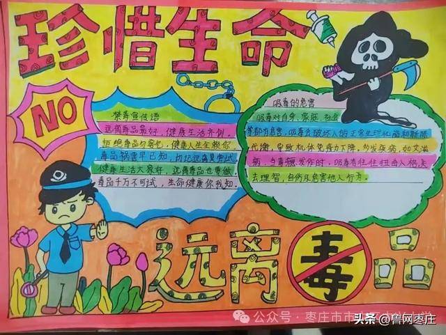 禁毒手抄报展,活动中,学生们发挥自己的奇思妙想,以毒品的种类、吸毒的危害等多角度绘制。这些色彩丰富、内容详实的作品,既是学习成果的展示,也是传递禁毒理念的“小课堂”。