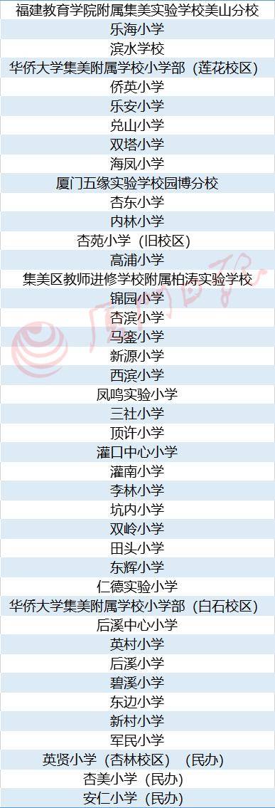 去年同安区集体户统筹学校名单在这(以教育部门公布为准):