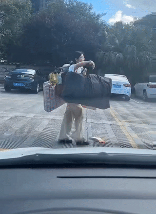 但视频中的这名女生,不仅把这些行李全部扛了起来,并且走起路来还十分坚定,她挺胸抬头看着前方,仿佛没有任何困难能把自己击倒。