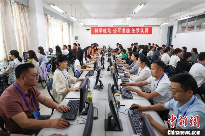 6月15日,贵州省贵阳市,评卷老师进行电脑阅卷。中新社记者 瞿宏伦 摄
