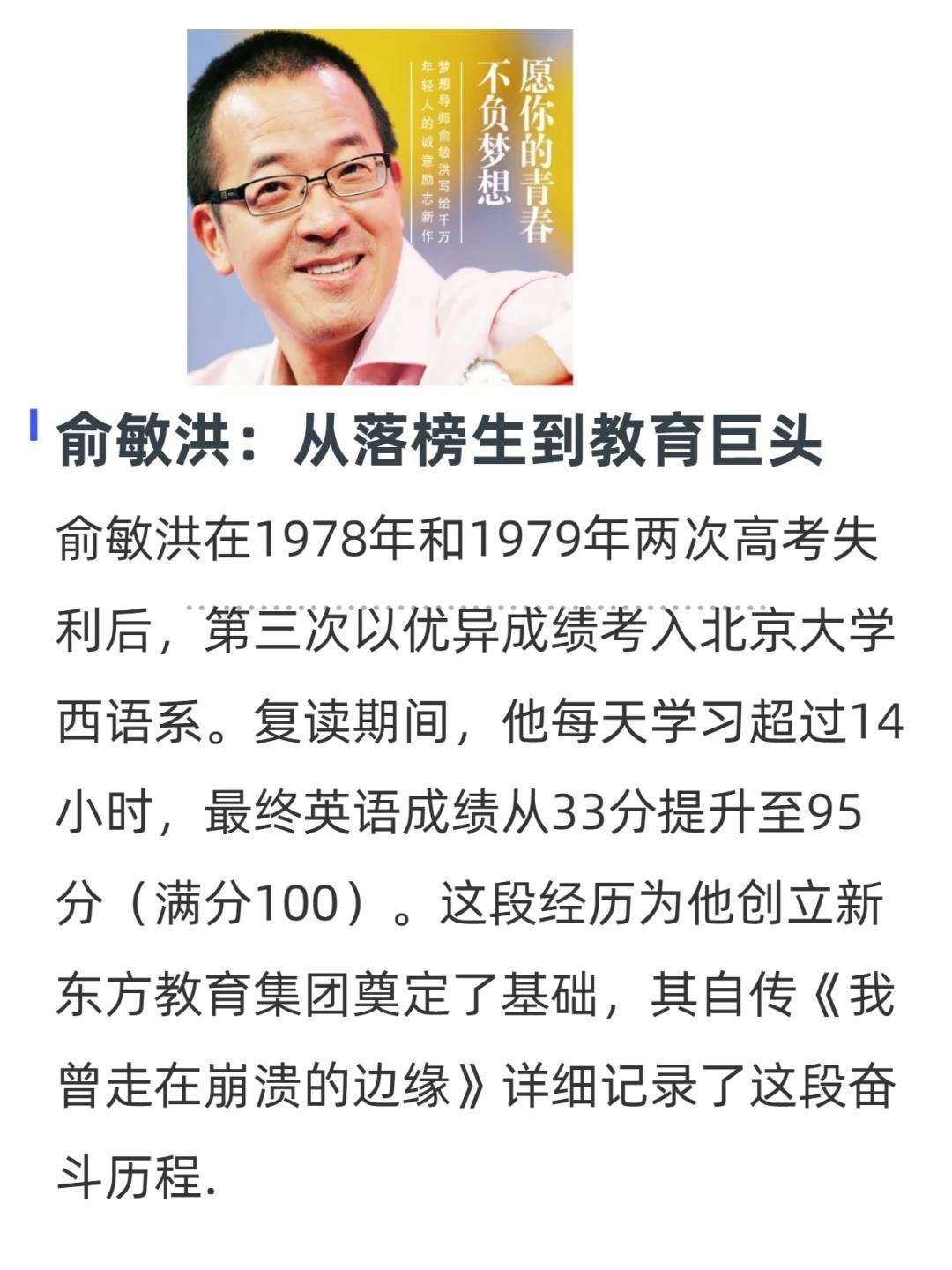 两次落榜又如何?第三次复读狂学英语,从 33 分到 95 分!这逆袭速度谁懂啊!现在的新东方教育帝国,都是当年熬的夜铸成的。