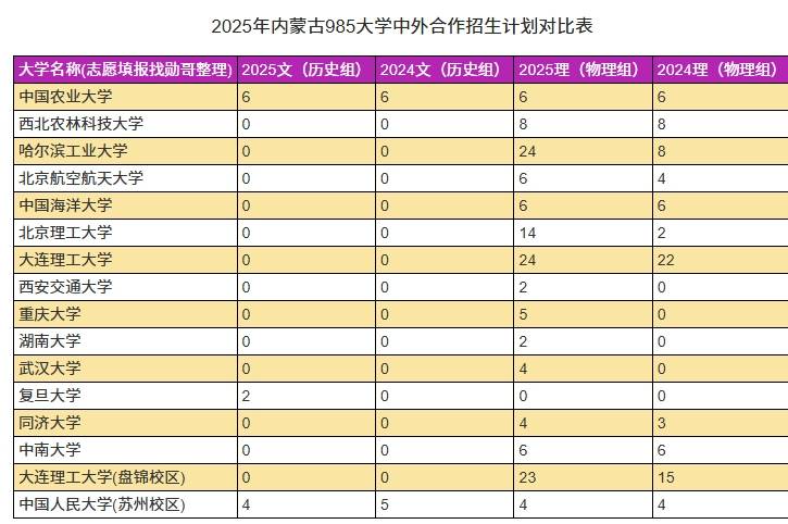 以下为内蒙古2025年新高考第一年,2025-2024年招生计划的对比分析!