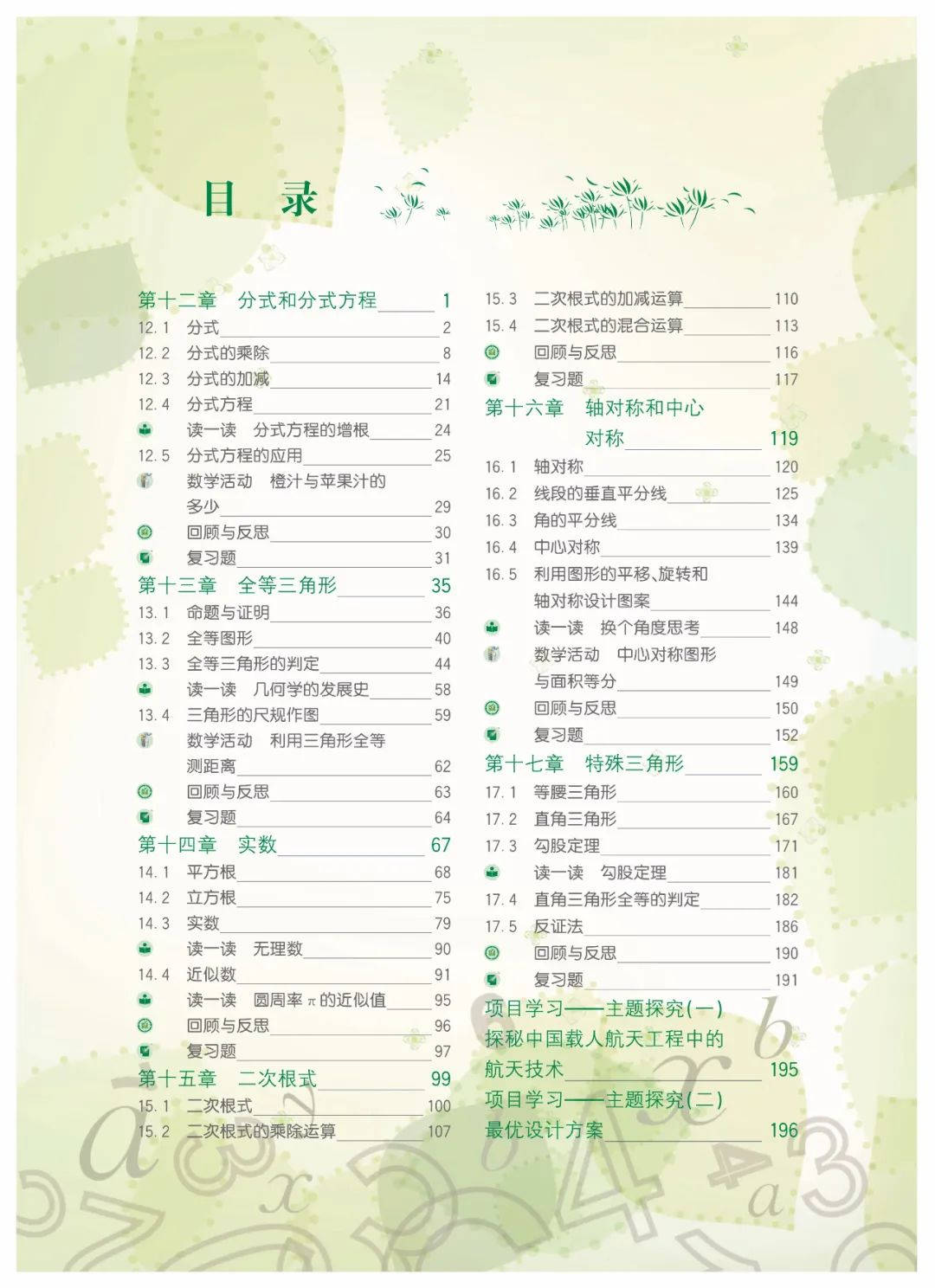 2025年秋季初二学生将迎来新版教材,新教材更加注重跨学科知识灵活运用!为了方便初中生在暑假预习新学期的课本知识,我们整理了新教材2025冀教版八年级上册数学电子课本,以图片的形式呈现给大家,希望对同学们的暑假学习有所帮助。
