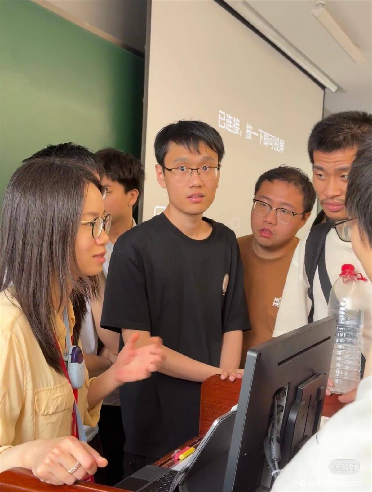 19日上午,北大数院硕士研究生小陈同学告诉极目新闻记者,她今天也参加了王虹老师的讲座,看到韦东奕老师依旧坐在第一排,现场有许多外国同学也来旁听,还有学生在课间为王虹老师献花,可能是为了表示感谢吧。