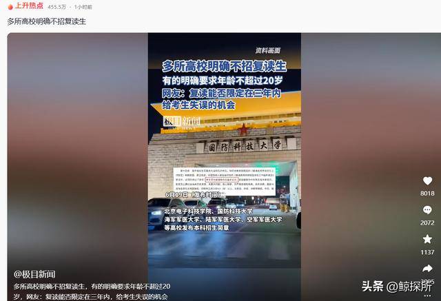 好不容易复读一年,想着再战一次,考一个更好一点的学校,结果没想到,多所高校竟然直接表示不招复读生了。